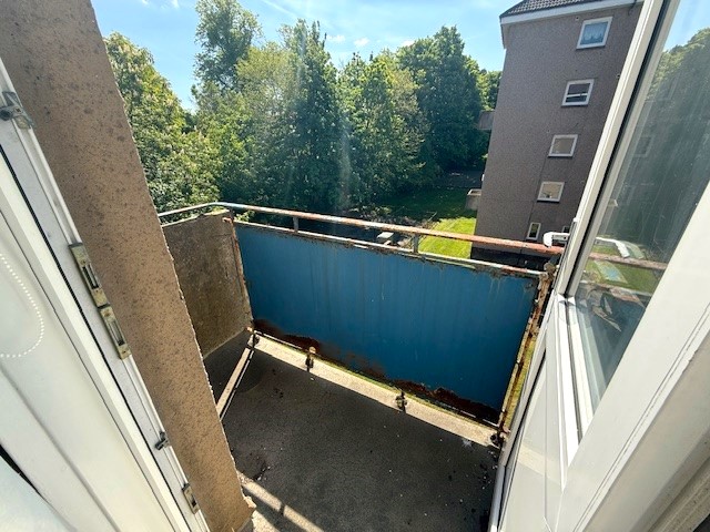 The property is entered via a Tidy Common Close and comprises Entrance Hall, Large Lounge with door leading to balcony, Fully Fitted Kitchen with Appliances, Upstairs leads to TWO Spacious Double Bedrooms and Family Bathroom with Electric Shower.